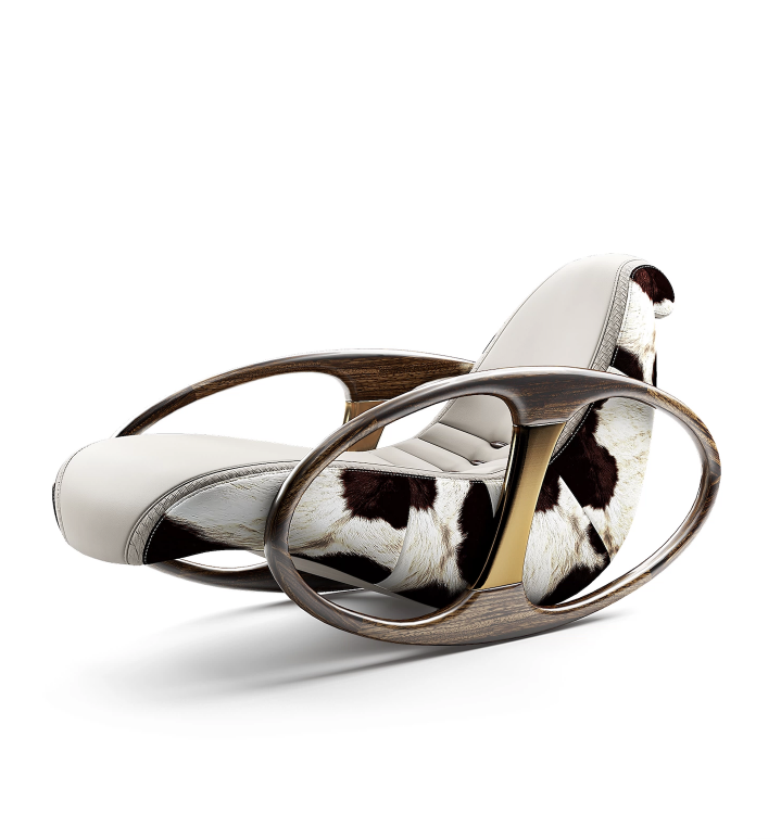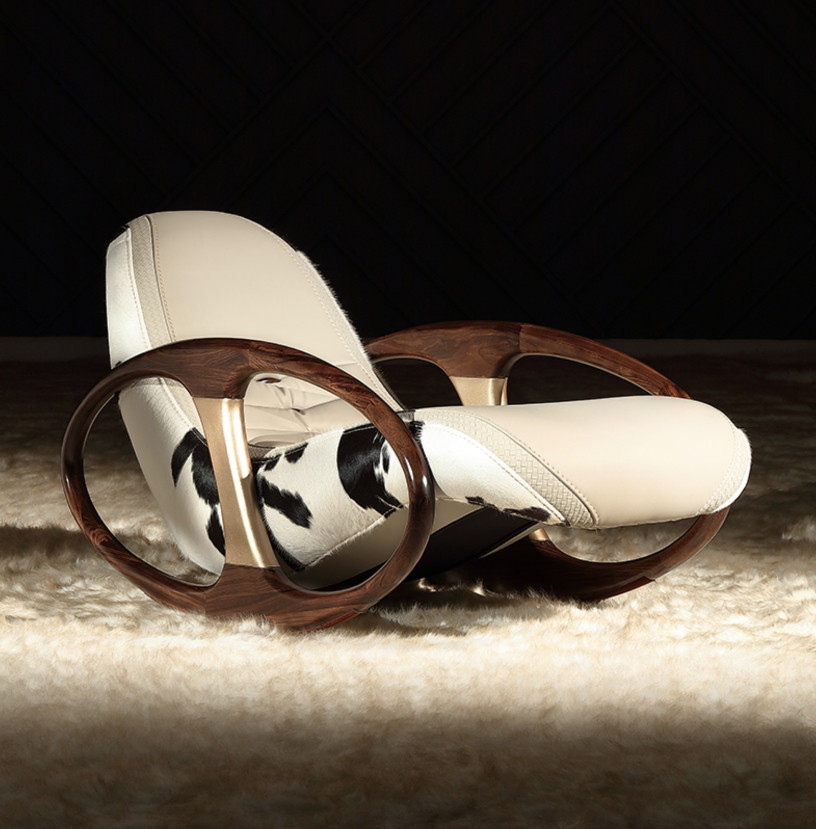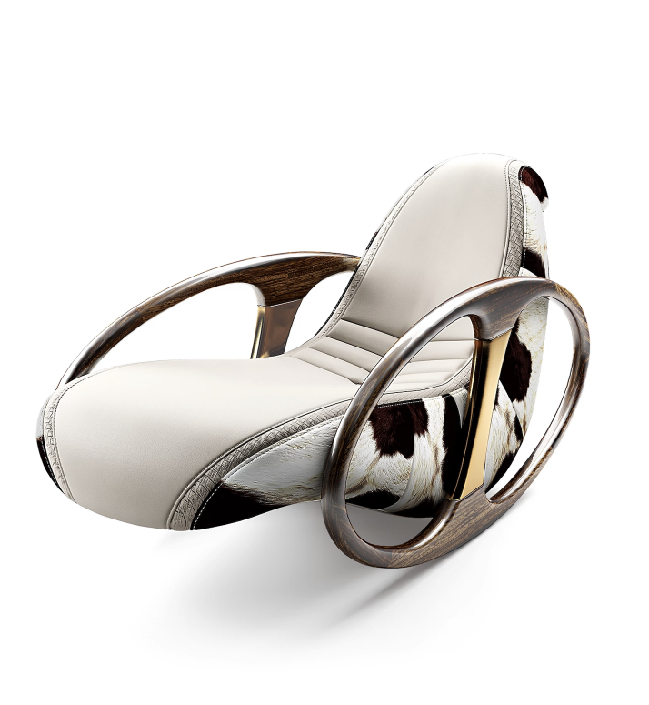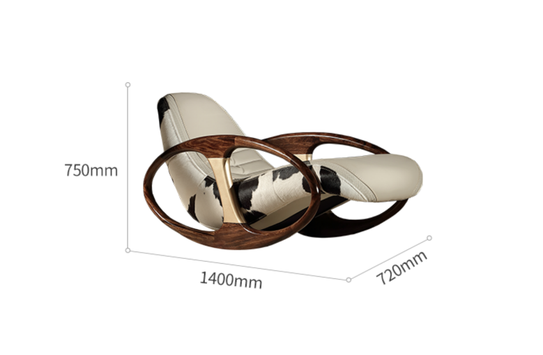 Кресло качалка, серое, Mivica, кожа, 72*140*75 см, итальянский стиль