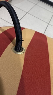 Есть дефект шнура у основания мяча.