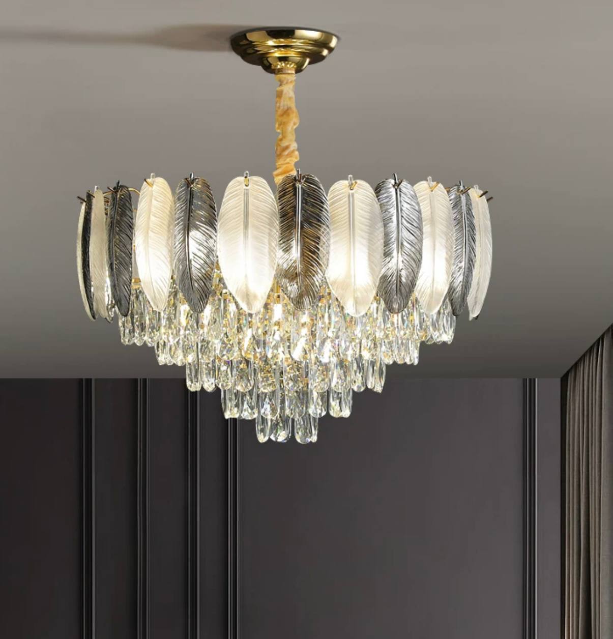Люстра подвесная AKKUTLU 80*44 белый пепел, стекло, металл, Е14.
