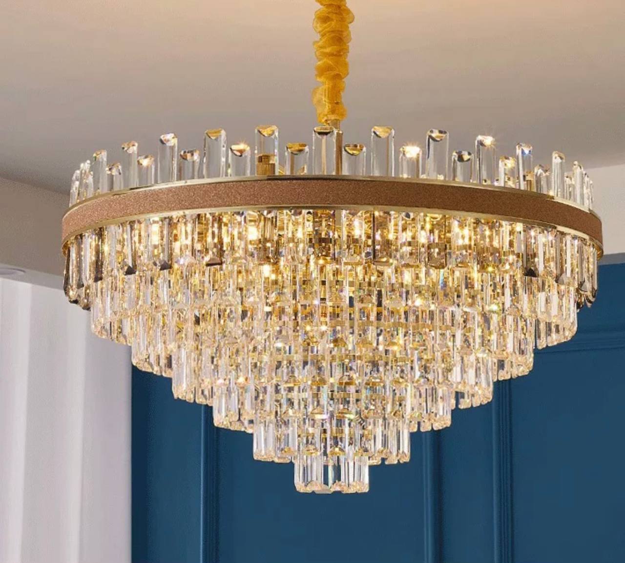 Люстра подвесная AKSES 50*31 золото, кристалл, металл, Е14.