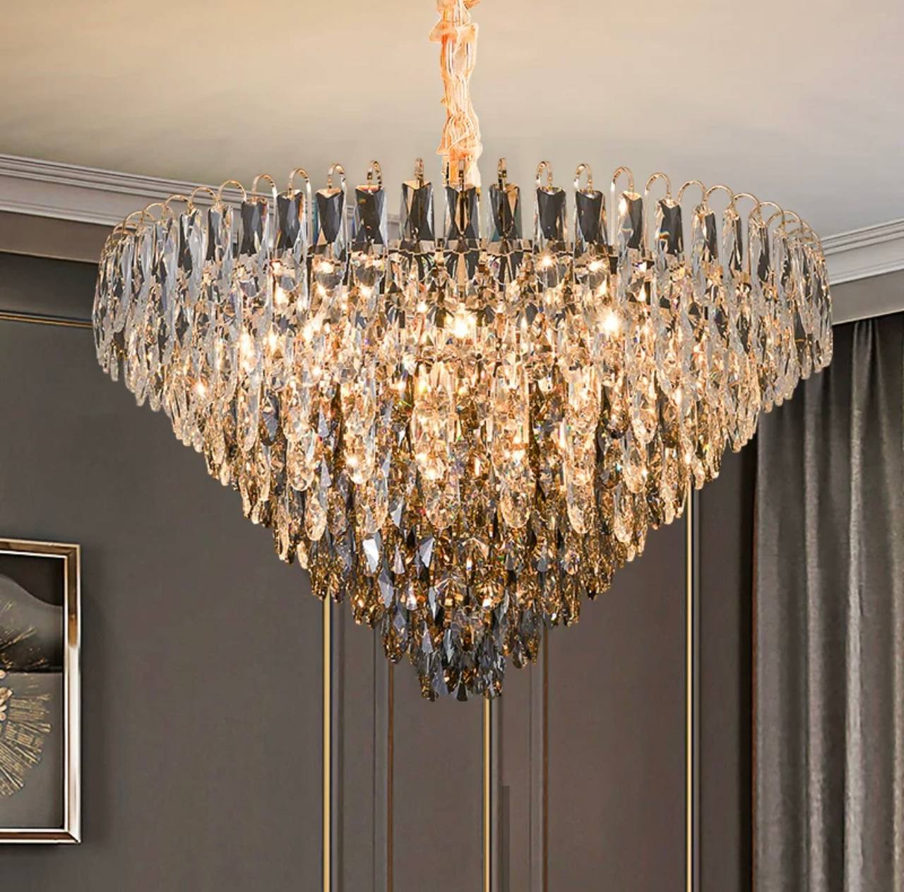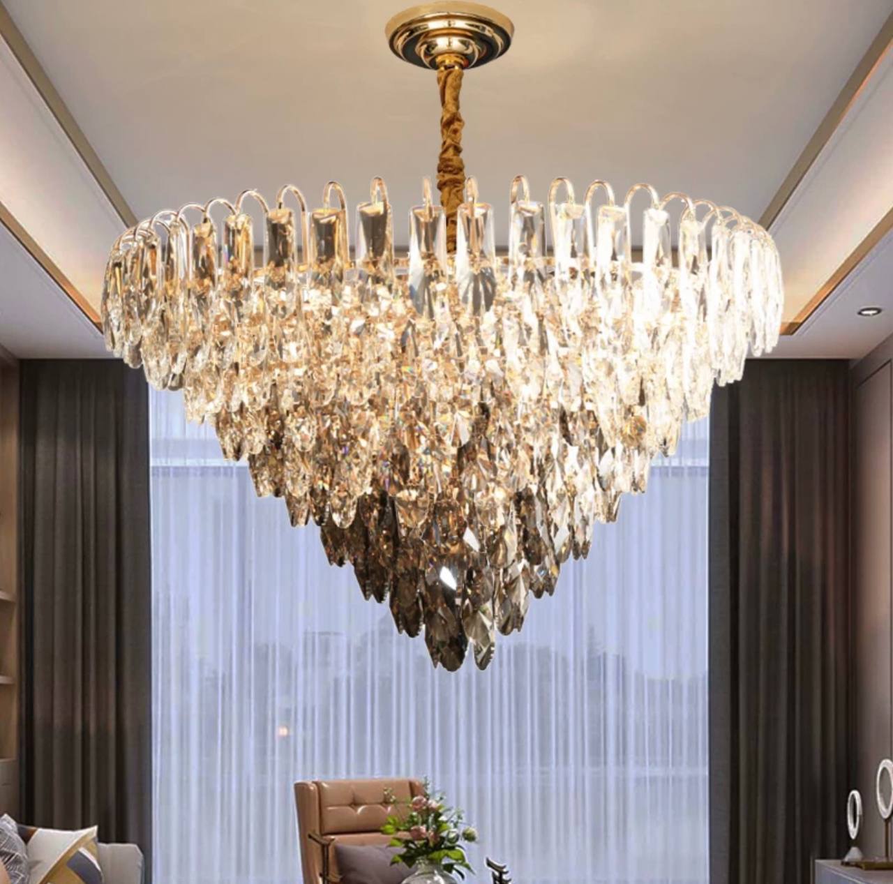 Люстра подвесная ERIM 50*31 золото, кристалл, металл, Е14.