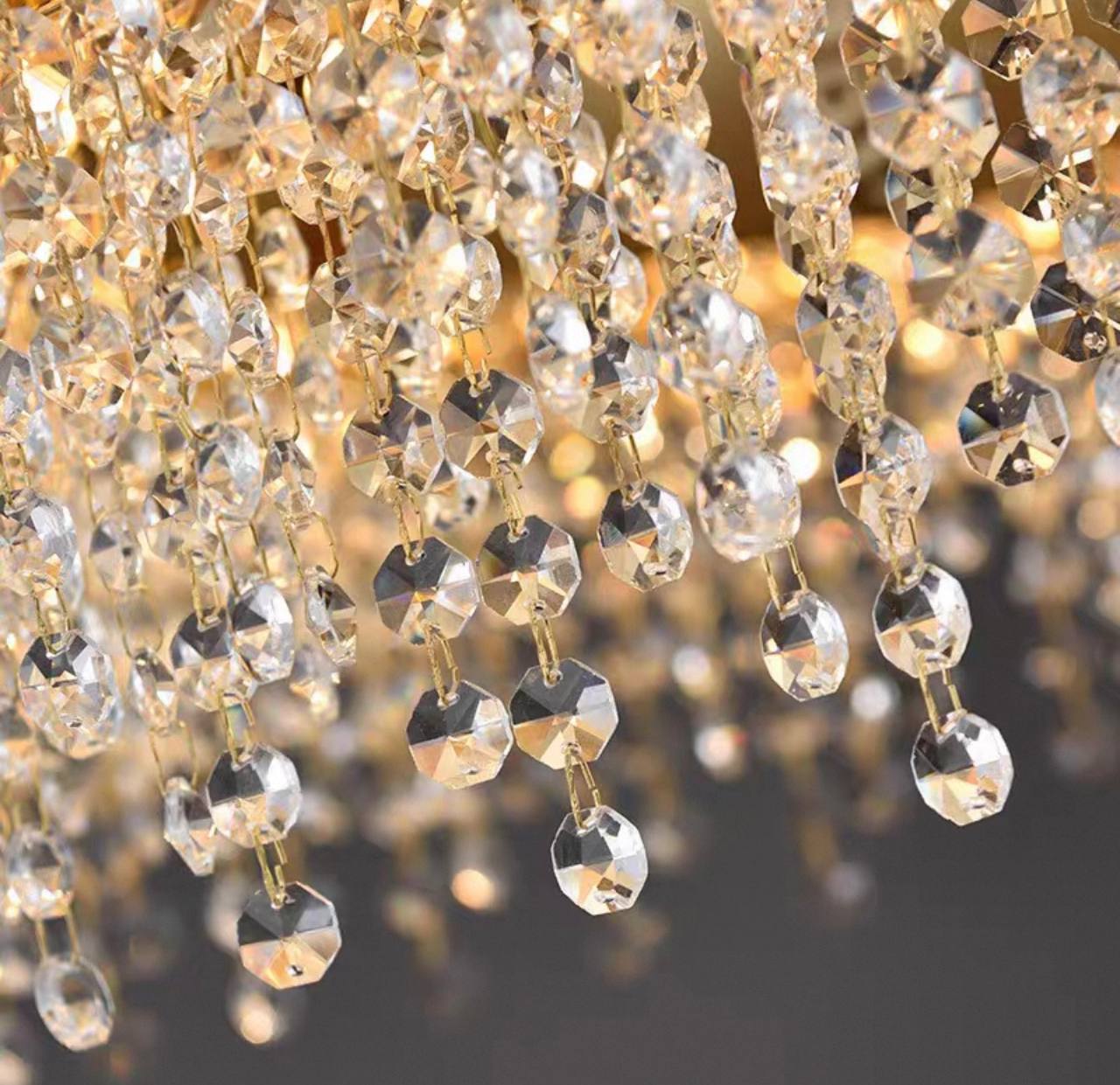 Люстра подвесная золотая Eluvar, металл,хрусталь, трос 50 см, 100*25 см, Е14