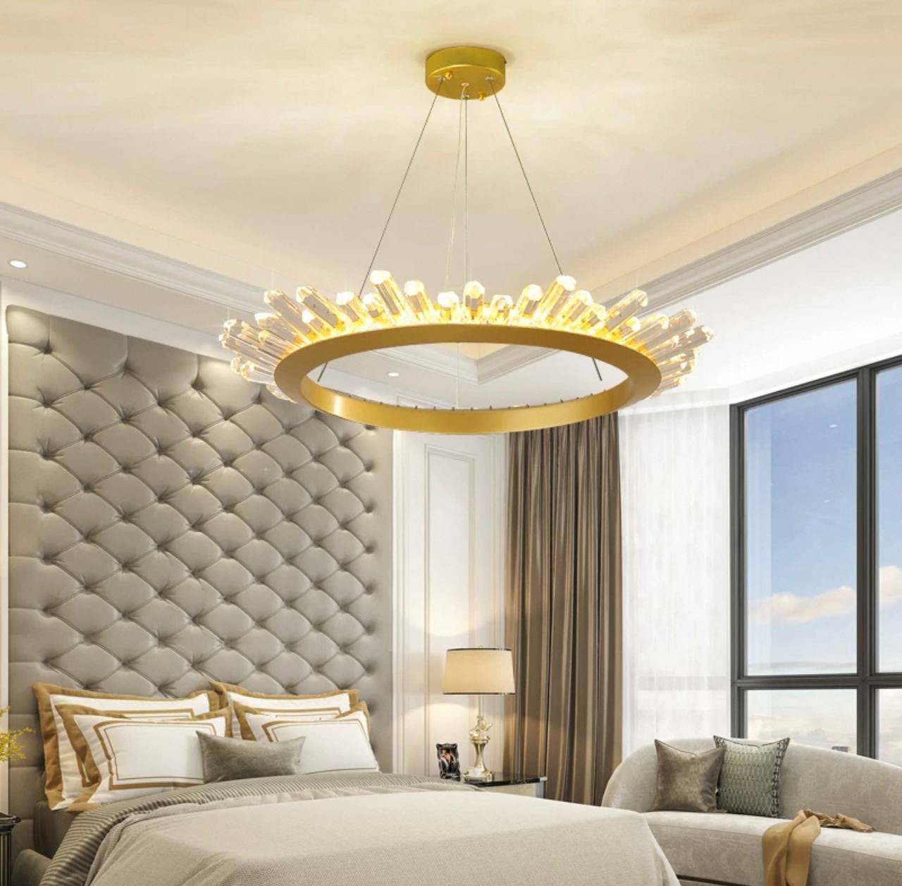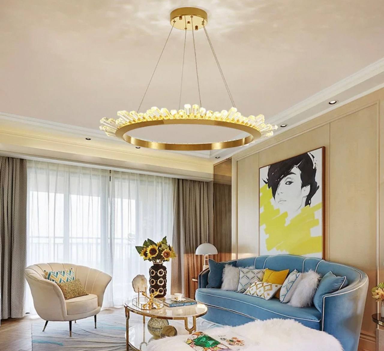 Люстра подвесная, золото, кристалл, KESTER 100*15 металл, LED.