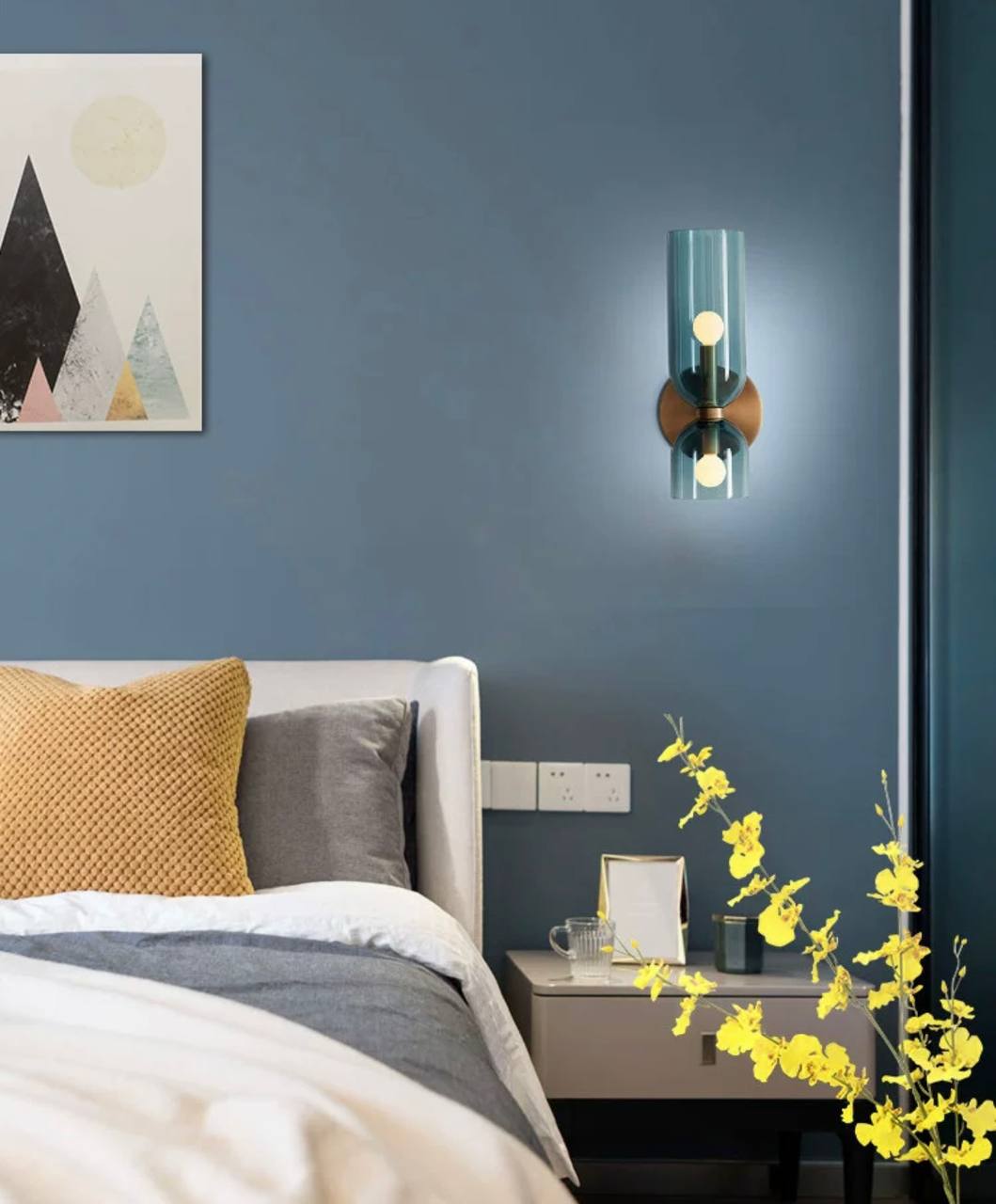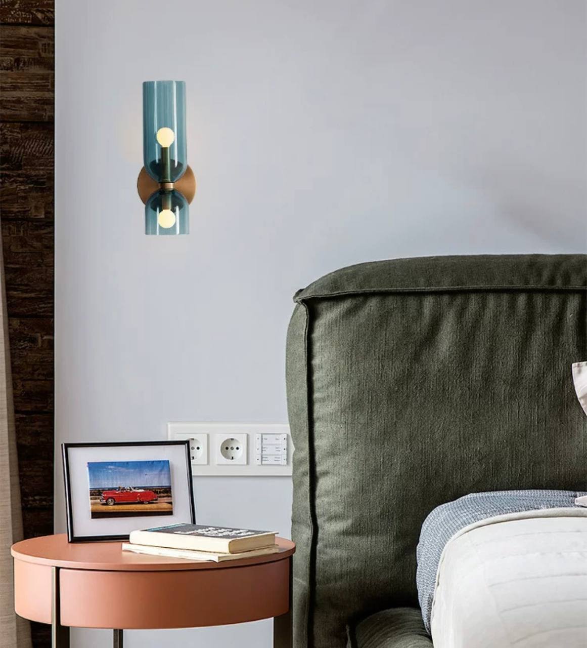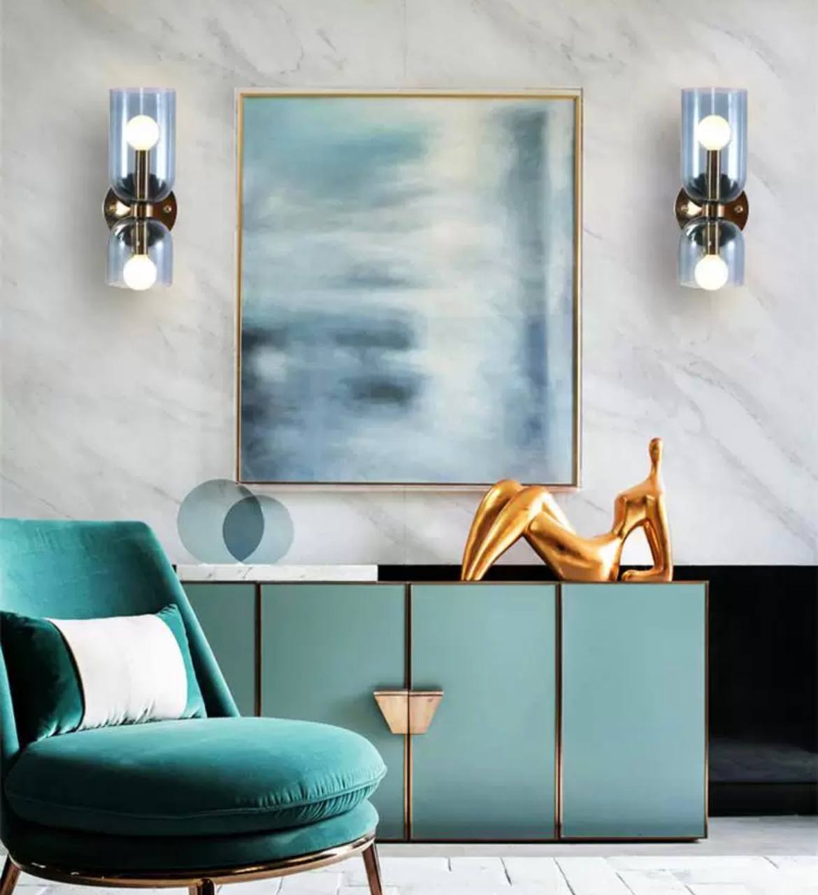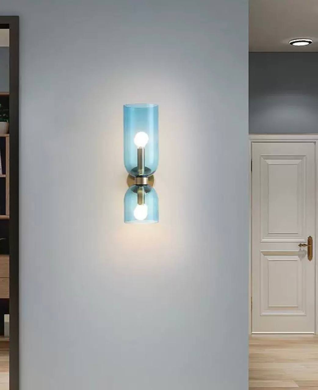 Настенный светильник, Бра MARSHALL 14*35, синий, металл, стекло, Е14.