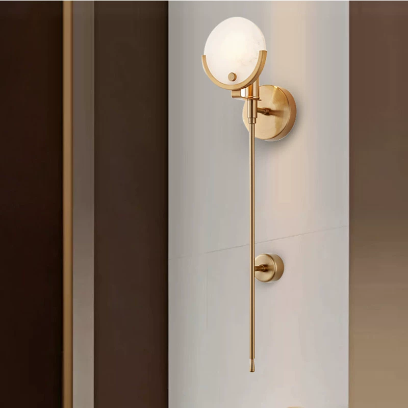 Настенный светильник, Бра MATT 13*60, медь, мрамор, металл, Е14.