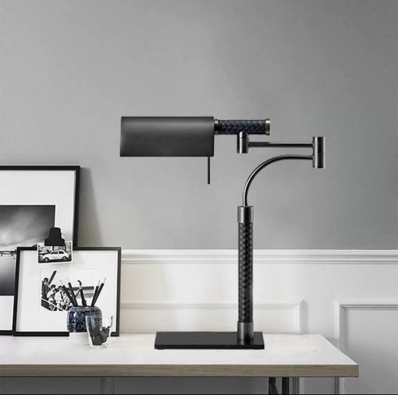 Настольная лампа BLACK выполненный в классическом стиле из прочных материалов. Cовременная лампа органично впишется в дизайн вашего рабочего стола и выгодно добавит ему необходимого света. Светильник настольный эргономичен и оснащен гибким основанием. Настольный светильник BLACK имеет небольшой размер и вес, что делает его удобным в использовании. Он легко устанавливается на стол, тумбочку или прикроватную полку. Лампа работает от сети, что обеспечивает ее надежность и долговечность.