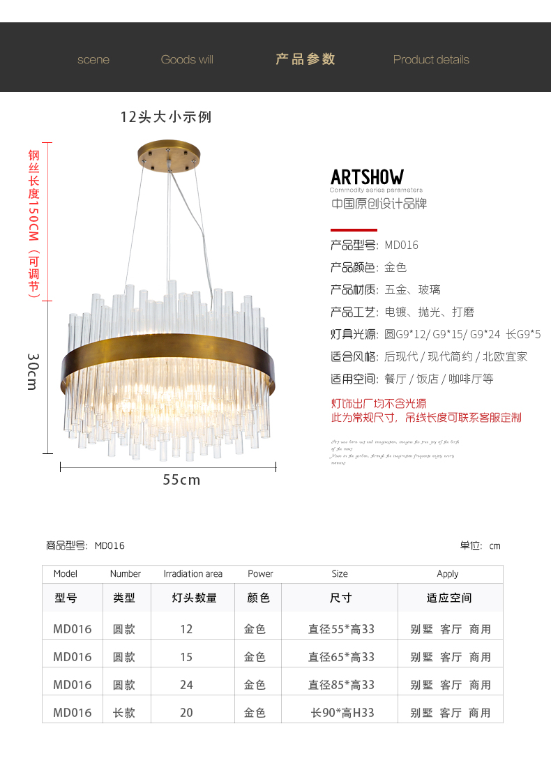 Дизайнерский светильник led 55*180 см, лавпа накаливания, led, железо, сплав