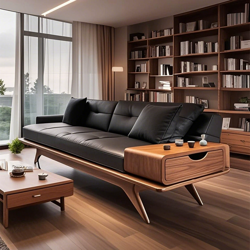 Стильный кожаный диван 240 см – прочный, удобный, массив дерева, цвет ясень, премиум для гостиной и офиса