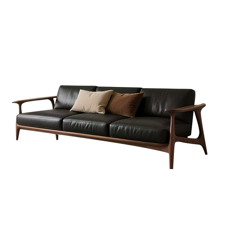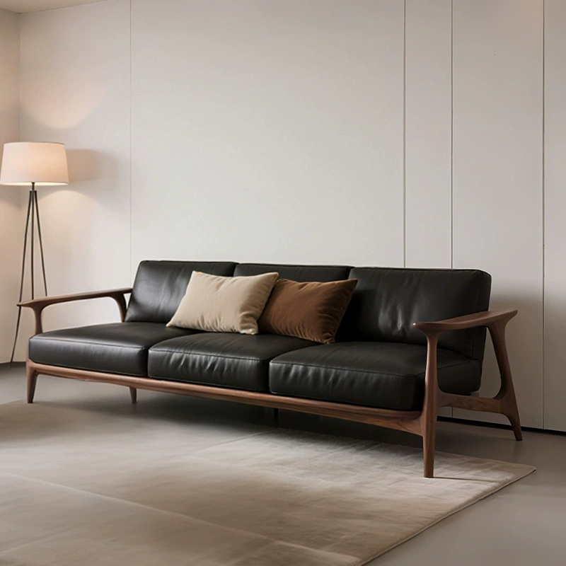 Прямой диван Hannah темный орех, кожа, дерево, 220*85*80 см