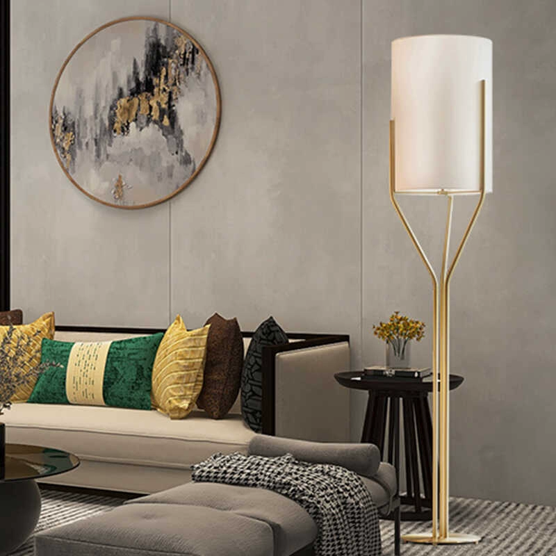 Торшер белый, медь Amelli 34*175, светодиодный, E27, металл, ткань