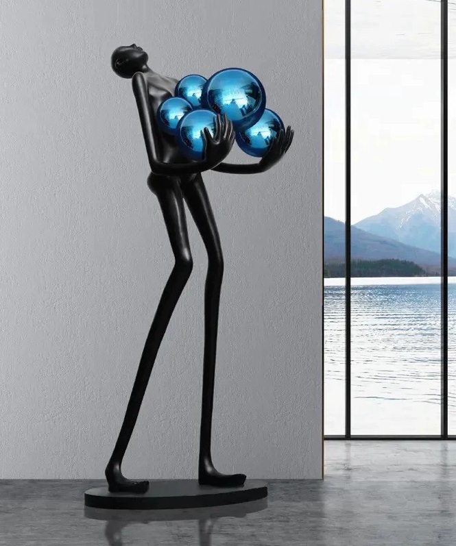 Торшер человек с синими шарами черный NIM, 80*42*180 см, LED, E27*6, смола со стекловолокном, 24 Вт