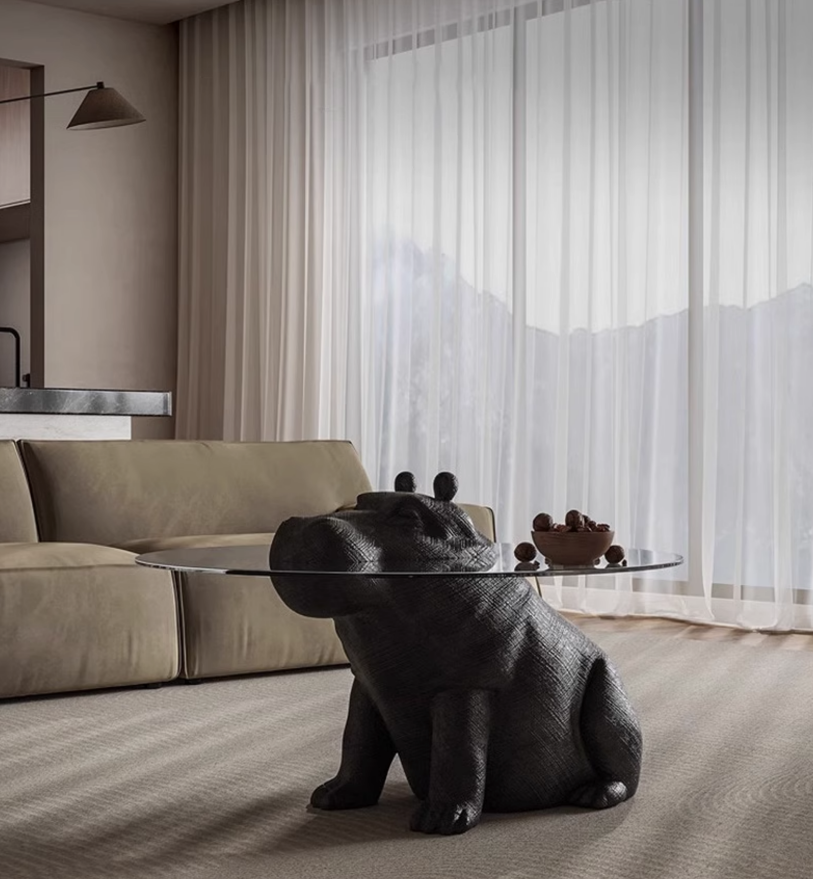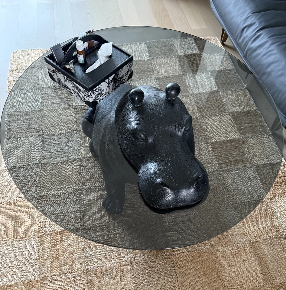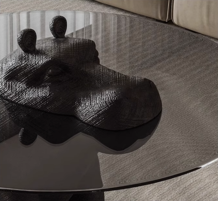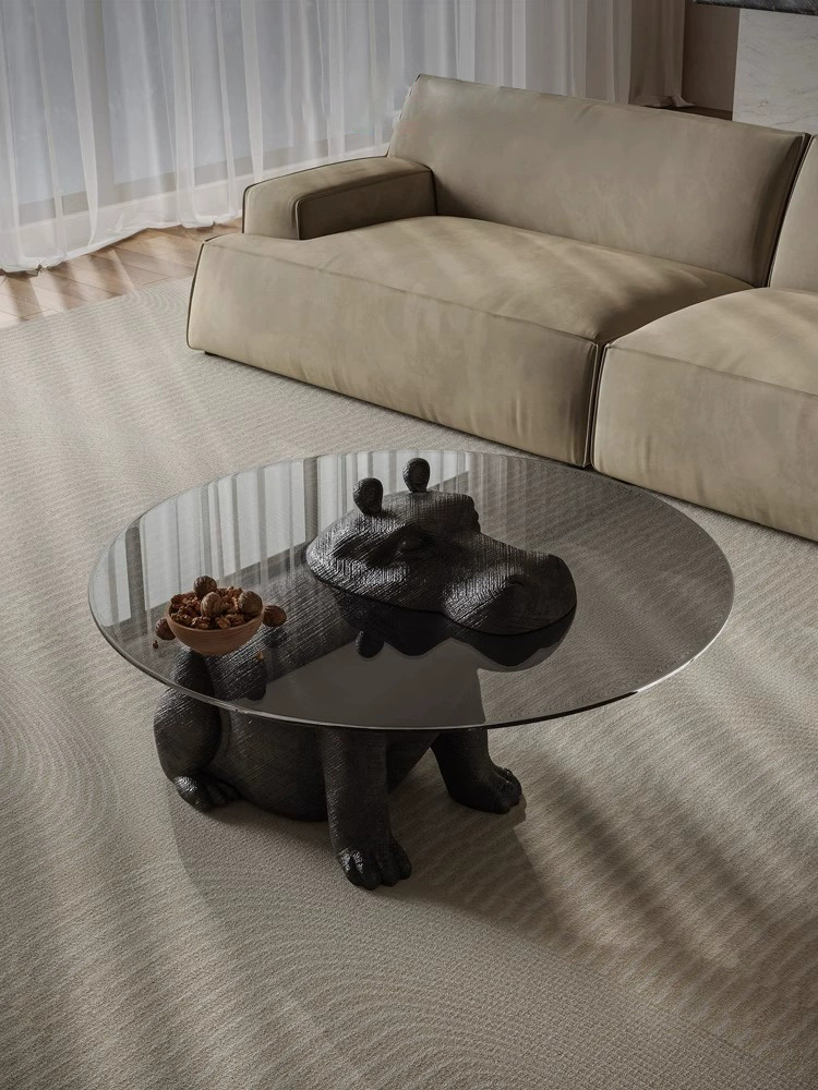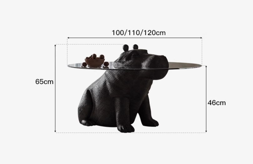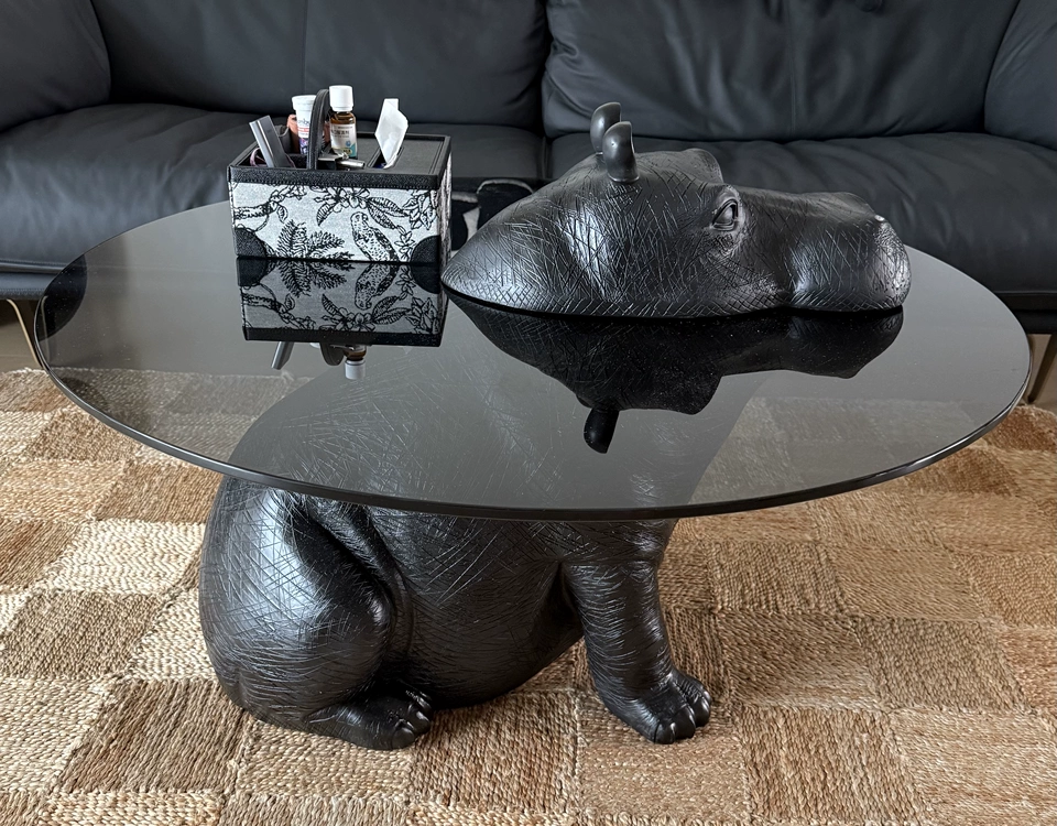 Журнальный стол бегемот, черный, закаленное стекло, 110*110*65 см
